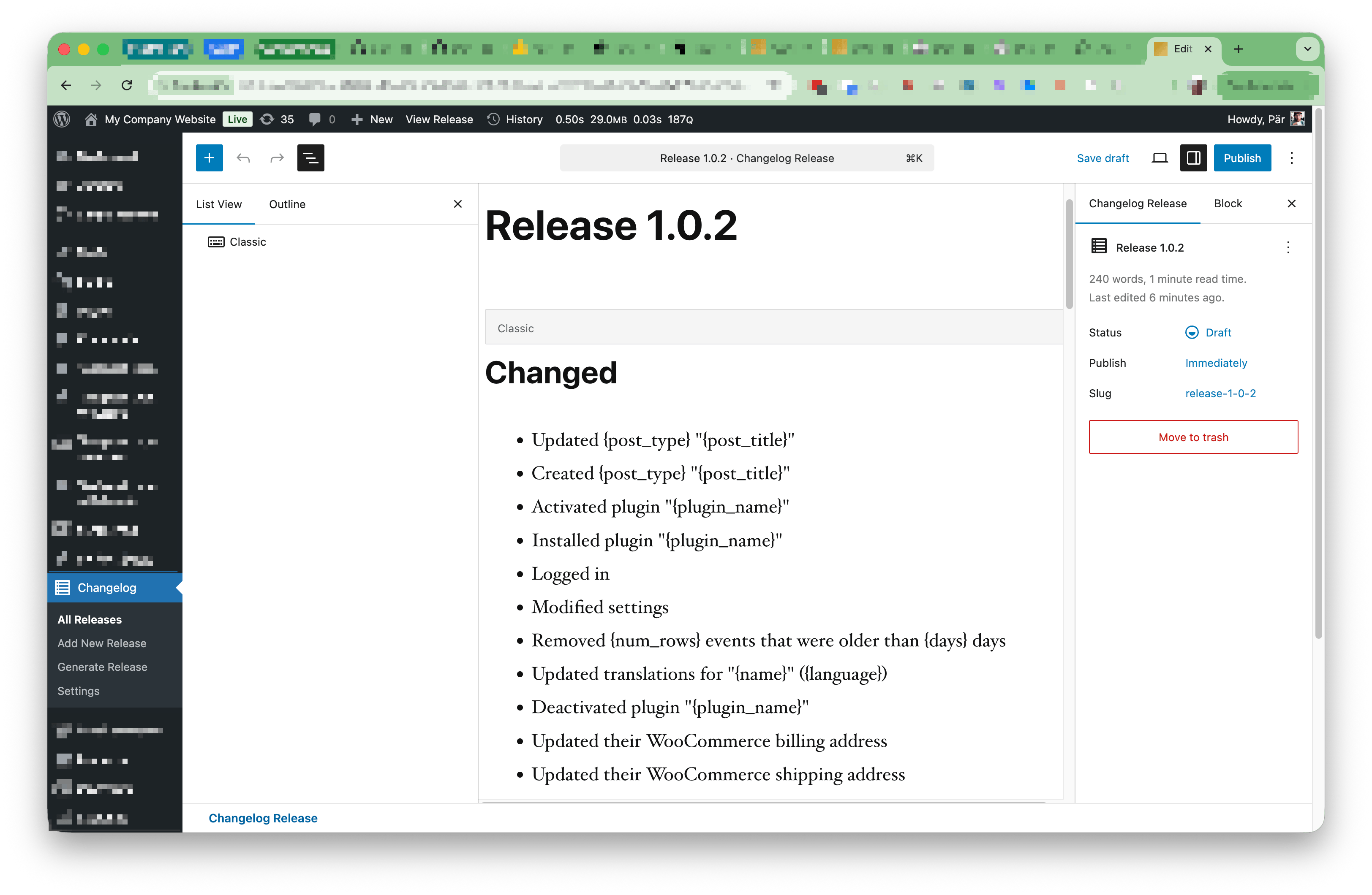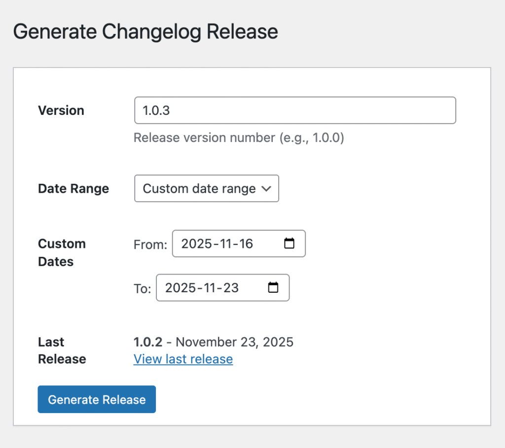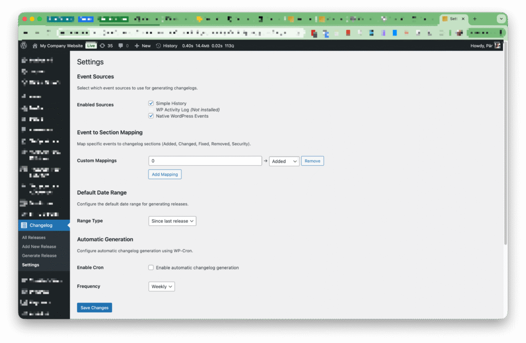 When Changelogify detects Simple History is installed, it pulls events directly from your activity log. All those post updates, plugin activations, user logins, and system changes that Simple History has been quietly recording can be transformed into structured release notes.