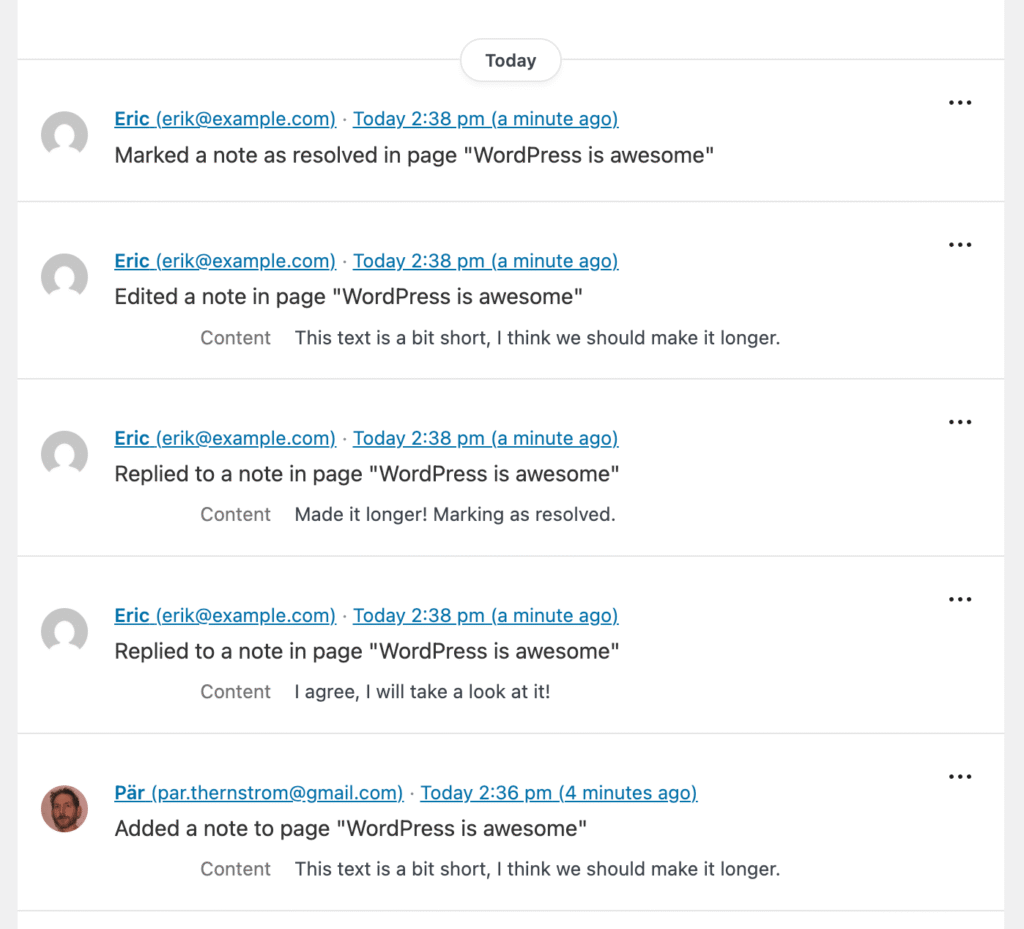 All the above actions will show up in the log, making it very easy for users to follow what’s going on on their website.