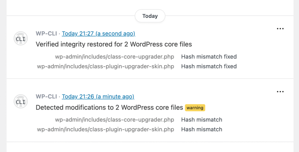 This release introduces a new security logger that automatically performs daily checksum verification on WordPress core files. If any core files have been modified, the logger will detect and record these changes, helping identify potential security issues. If the checksum of a modified file is restored, you will also get a log message about that.