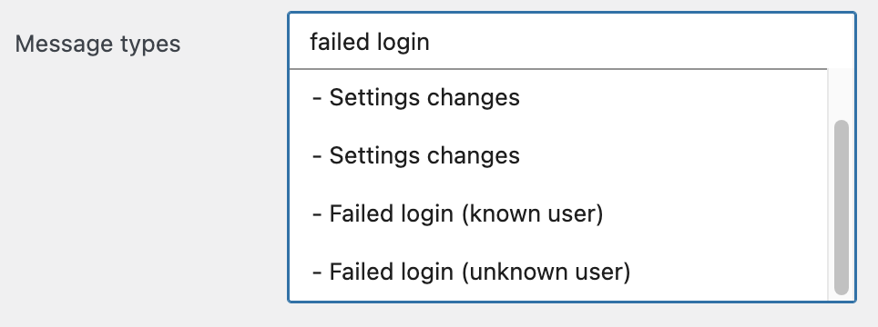 - Granular failed-login filters: “Failed login (wrong password)” for known users and “Failed login (unknown user)” for non-existent usernames, alongside the existing “Failed user logins” option.