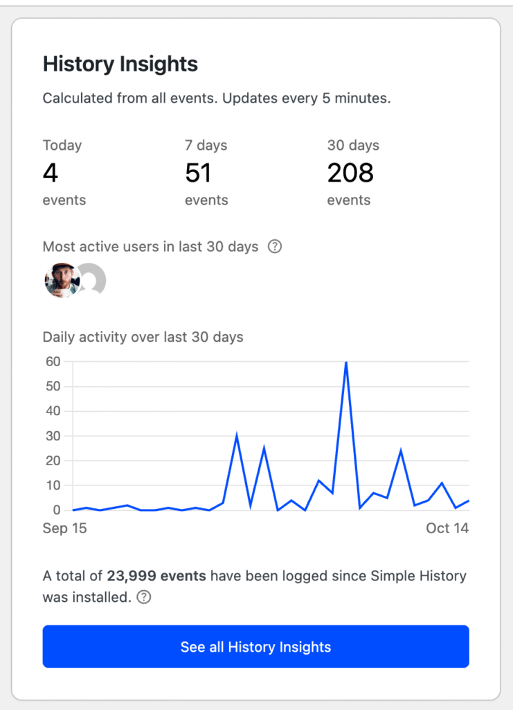 - The total number of logged events since the plugin was installed.
